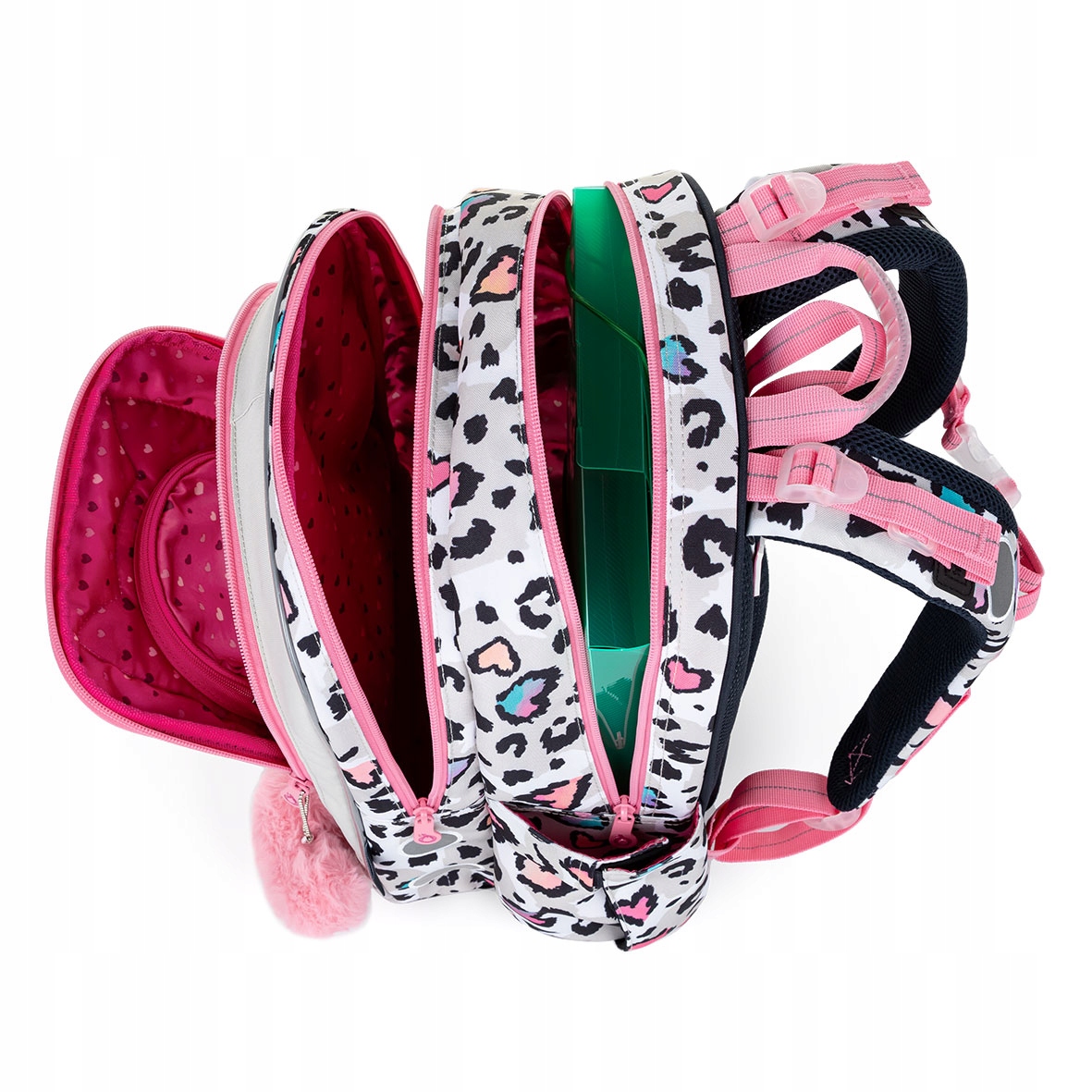 рюкзак имеет две камеры. В задней части мы рекомендуем поставить самые тяжелые книги, переплеты. В передней камере находится небольшой сетчатый карман, закрытый с молнией - для документов, ужинов. Передний карман подойдет, например Завтрак или Penn 23037 Cencil Case (не оборудование). В кармане есть карбинский человек для ключа.