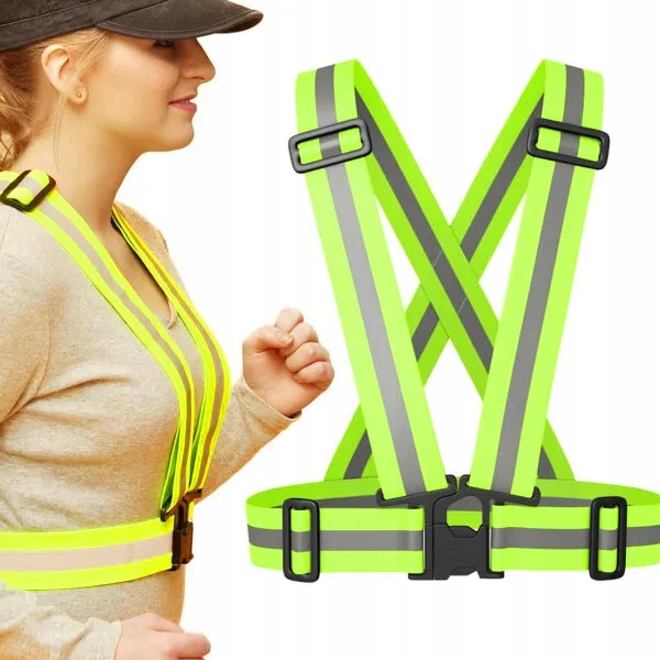 Универсальный светоотражающий ремень безопасности с полной двухступенчатой регулировкой длины. Они идеально подходят для езды на велосипеде или мотоцикле, а также, а может быть, и особенно для пешеходов — они значительно улучшают нашу видимость на дорогах общего пользования. Помните, что ваша безопасность превыше всего, и отказ от ношения светоотражающего жилета подвергает нас штрафному и ненужному риску.