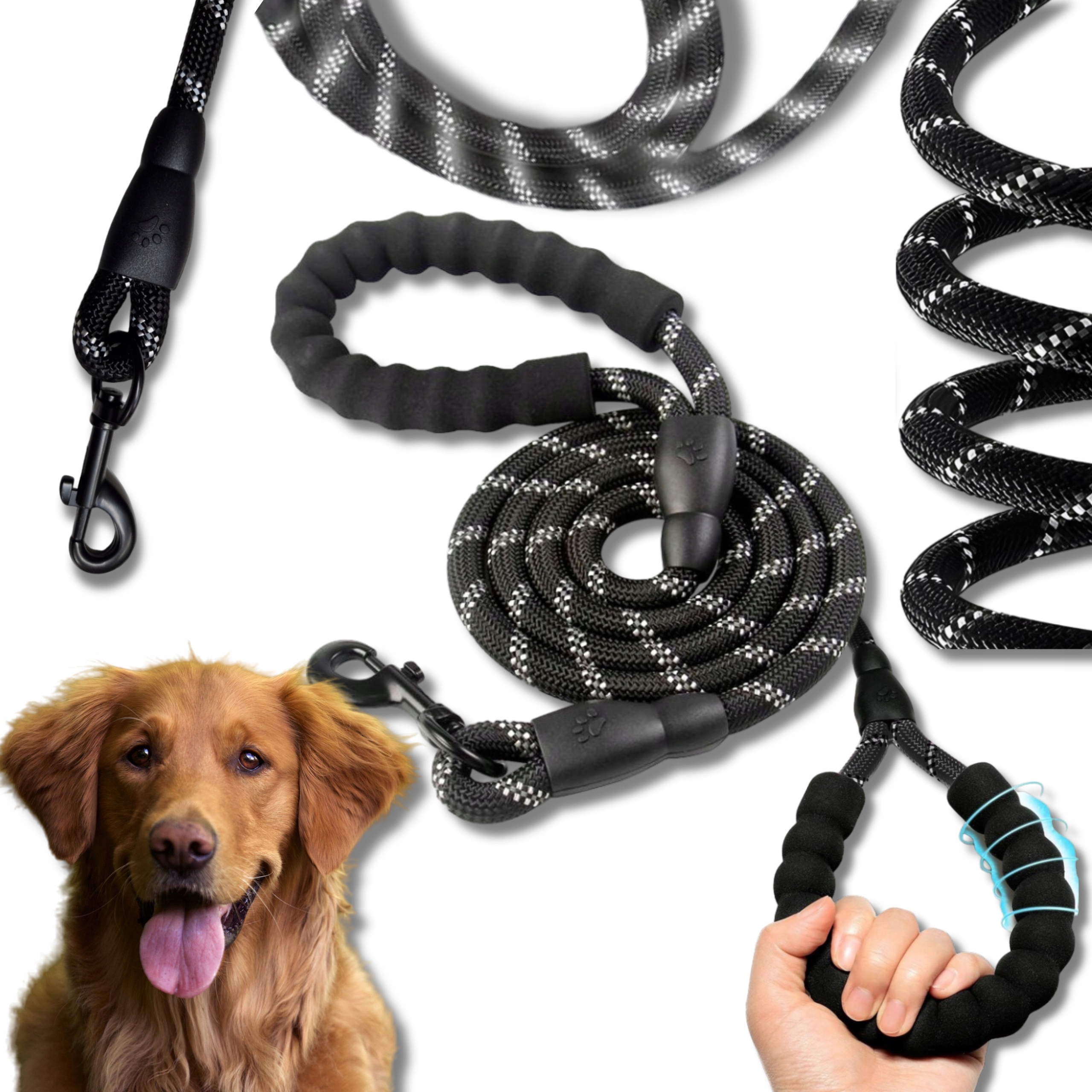 ➡️ РУЧКА ПЕНА - Эргономичная ручка из мягкой пены обеспечивает комфорт во время прогулок, даже когда собака сильно тянет. Благодаря этому поводок удобен и не натирает руки.
