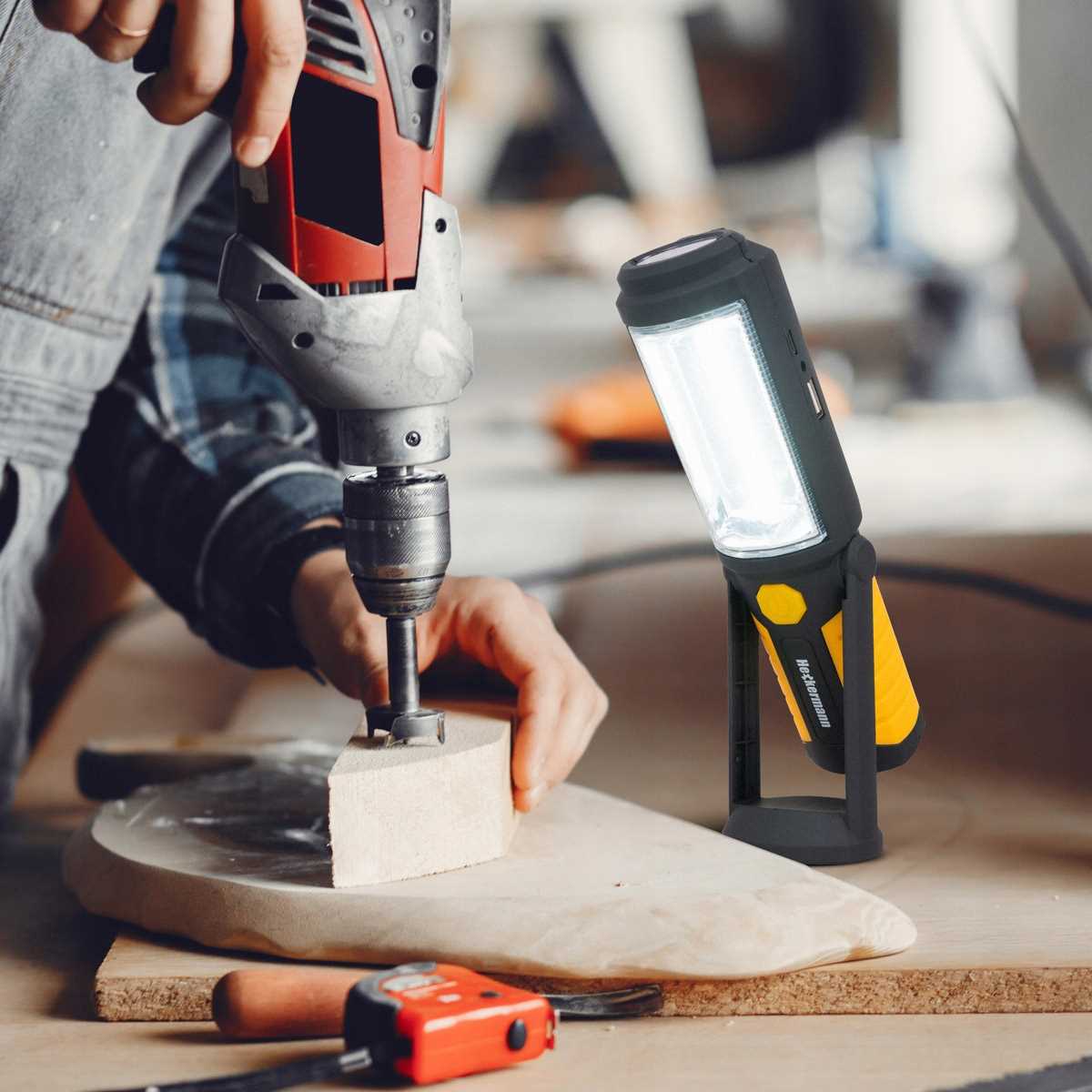 ⭐ Светильник подходит не только для работы в мастерской или гараже, но и хорошо работает в поездках, как фонарик в палатке, на кемпинге или там, где есть удобный дополнительный источник света. требуется.