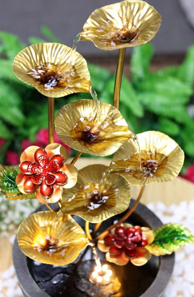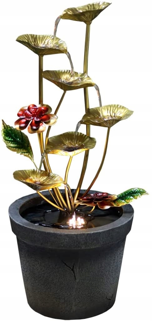 ОТДЫХАЙТЕ ДОМА: Установка фонтанчика — отличный способ создать спокойную и дружелюбную атмосферу в вашем саду или доме. Звук и вид струящейся воды естественным образом успокаивают как на открытом воздухе, так и в помещении, создавая ощущение покоя и расслабления. Доступен в различных вариантах дизайна: от элегантных каменных конструкций, предназначенных для украшения сада, до декоративных фонтанов, идеально подходящих для вашего кабинета или гостиной. УСТАНОВКА НЕ ТРЕБУЕТСЯ: этот стильный современный фонтан является автономным и легко устанавливается, не требуя водопровода. Работает от электрического насоса, легко подключается и перемещается по дому. Чтобы настроить его, следуйте инструкциям, вставьте светодиодную лампу, подключите трубку от статуи к насосу, а затем соответствующим образом добавьте воды. Вода течет из верхних чаш в нижнюю. ПРЕКРАСНО В САДУ: они не только красиво смотрятся в саду, но также хороши для привлечения диких животных, в том числе птиц и бабочек, которых привлекает вода, что делает их потрясающим центральным элементом любой стены сада или патио. Они идеально подходят для того, чтобы заглушить шум дорожного движения, создавая тихий шум ручья, превращая ваш двор в спокойное убежище от суеты современной жизни. Каждая конструкция оснащена светодиодной подсветкой, что делает их очень привлекательными в ночное время. ДИЗАЙН: Наличие фонтана в помещении отлично подходит для создания успокаивающей атмосферы и снятия стресса. Движущаяся вода также действует как естественный увлажнитель и помогает бороться с загрязнением воздуха, выделяя отрицательные ионы. Комнатный фонтан станет отличным дополнением вашего домашнего офиса или кабинета, а также может выглядеть потрясающе как уникальное украшение в вашей гостиной. Все они оснащены белой светодиодной подсветкой, что делает их очень привлекательными в ночное время. Вода течет из верхних чаш в нижнюю. РАЗМЕРЫ: Этот фонтан имеет приятный дизайн с цветами лотоса и лепестками, расположенными на разной высоте. Этот фонтан имеет размеры ок. 24,5 х 24,5 х 26,5 см. Питание осуществляется по водонепроницаемому кабелю длиной около 5 м. В комплект входят: Насос с 3-контактным адаптером UK, светодиоды, камешки и фигурка с подставкой. Выходная мощность: 220–240 В. Весит ок. 4,5 кг.