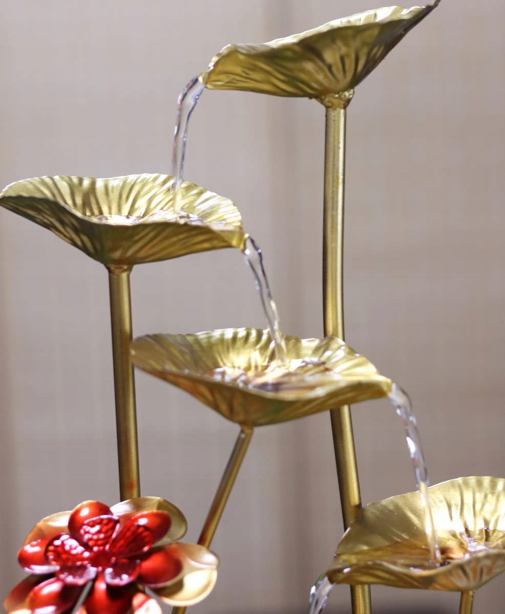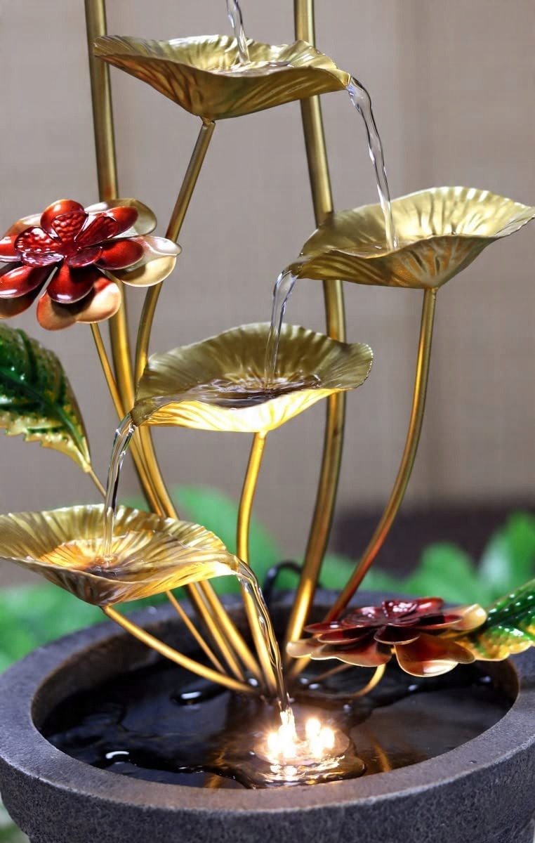 GEEZY Garden Water Feature Светодиодный фонтан для внутреннего и наружного применения Каскадные отдельно стоящие садовые статуи из полирезины Светильники и водные украшения (металлический лотос)