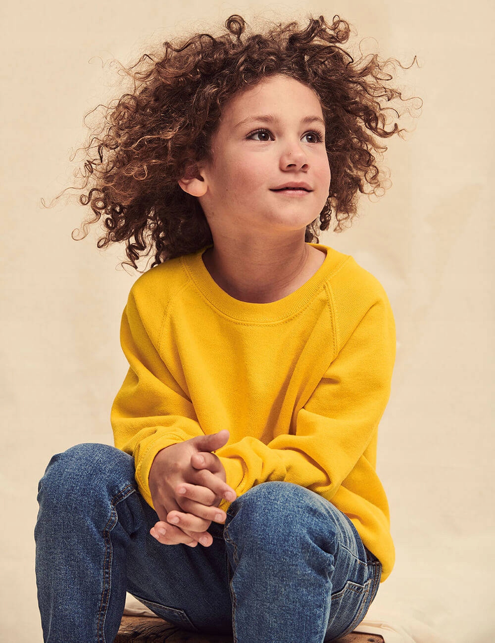 Детская толстовка реглан Fruit of the Loom с утеплителем, пух внутри, без капюшона, надевается через голову