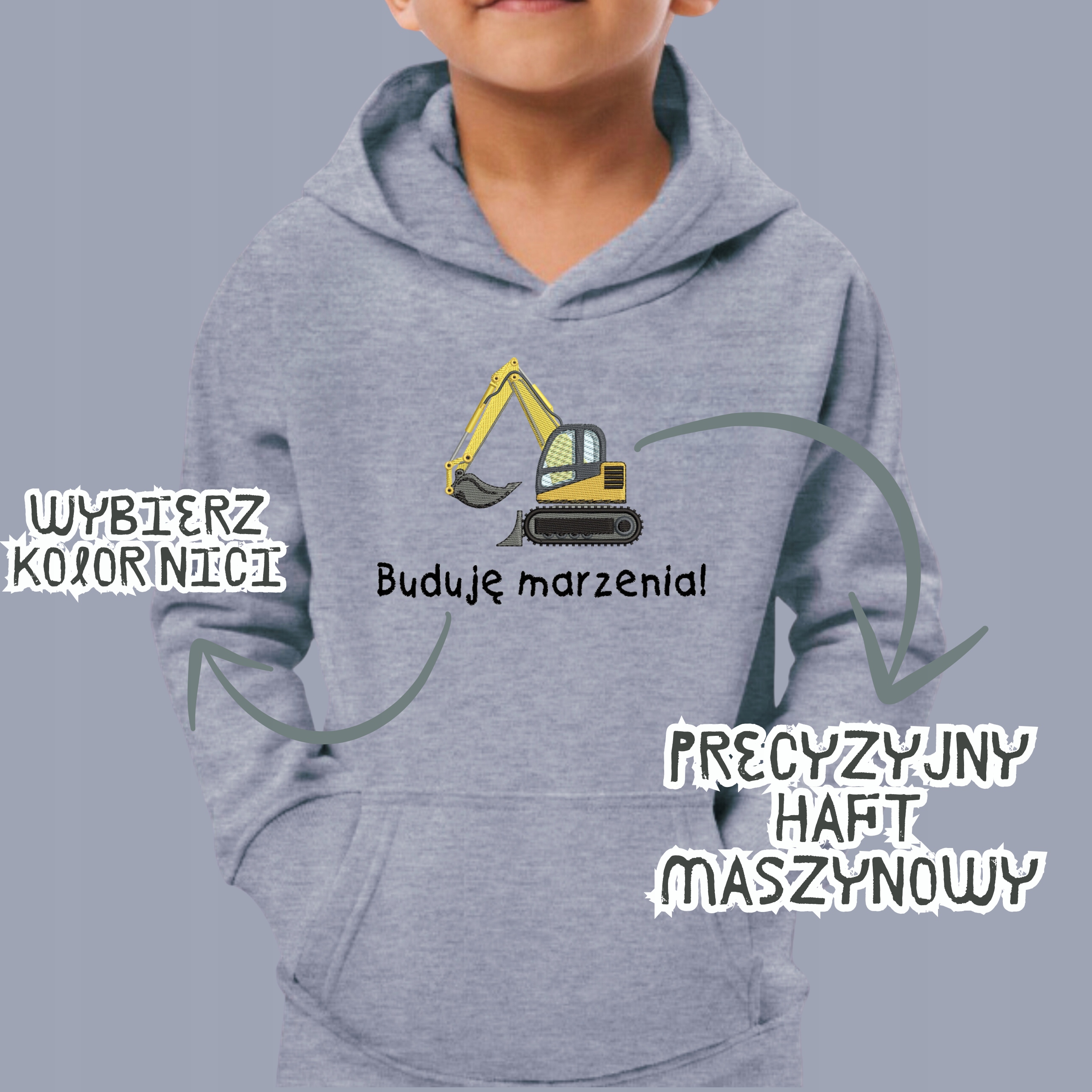 ТОЛСТОВКА С КАПЮШОНОМ ДЛЯ МАЛЬЧИКОВ EXCAVATOR R 104 ПОДАРОК + ЦВЕТ ВАШЕГО ТЕКСТА