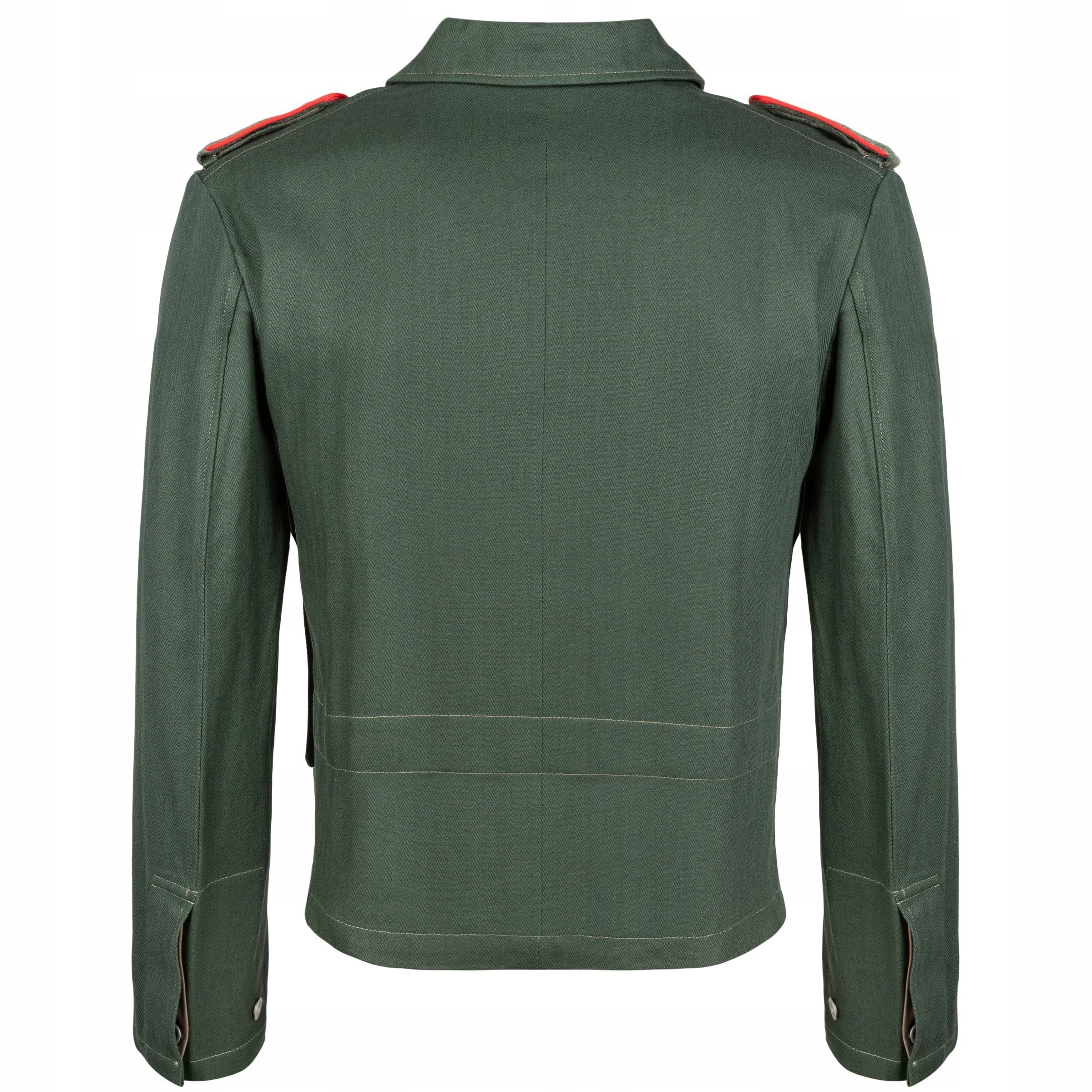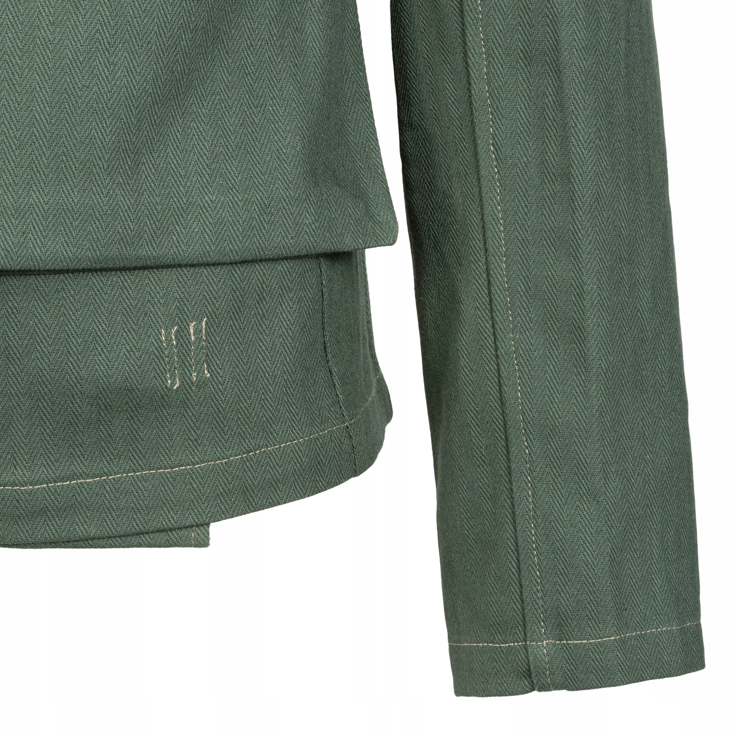 Идеальная копия немецкого артиллерийского мундира - Sturmgeschutzbluse в исполнении Вермахта. Толстовка изготовлена из хлопкового денима, точного кроя и фактуры материала - так называемой елочка, также известная как HBT, саржа «елочка». Реплика изготовлена по заказу компании Nestof®!