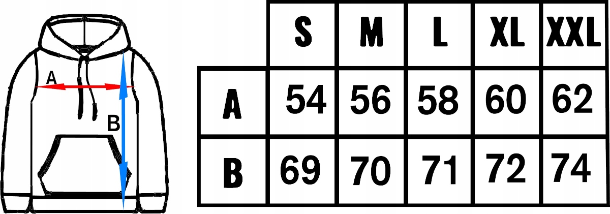 Положите любимую толстовку ровно. Измерьте ширину и длину толстовки подмышками, как на картинке, и откорректируйте размер по нашей таблице.