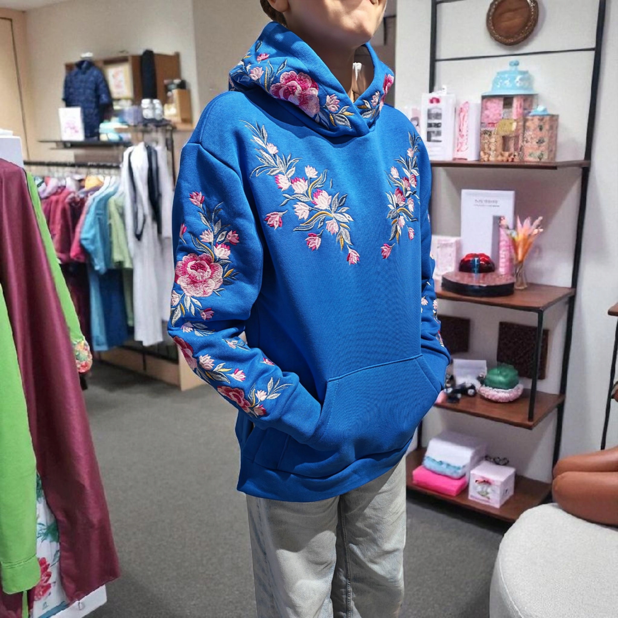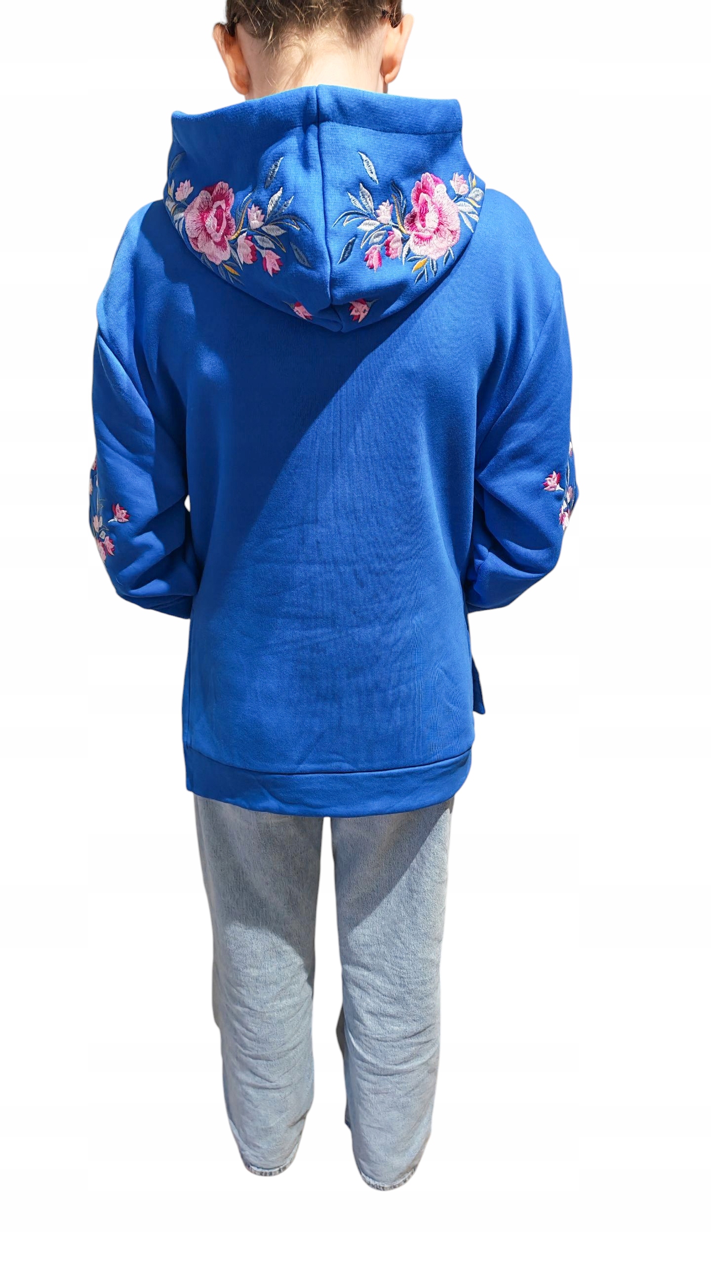 СВИТШОТ С ЦВЕТОЧНОЙ ВЫШИВКОЙ L ТЕПЛЫЙ КРАСИВЫЙ КАПЮШОН С КАРМАНОМ СИНИЙ