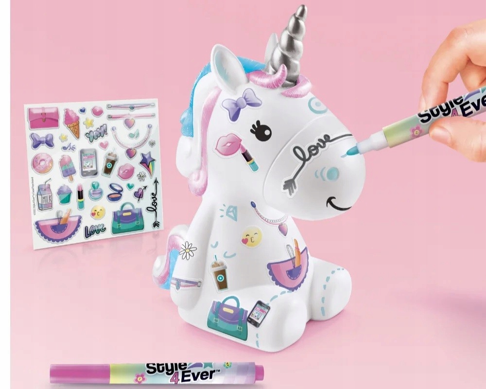 - В набор входят: светящийся Декокорн для декора, два маленьких Декокорна с соской, лист наклеек с блестками, 2 маркера.