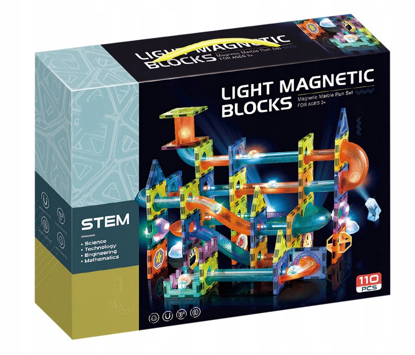 Светящиеся магнитные блоки, шариковая дорожка, 110 элементов, шариковая дорожка