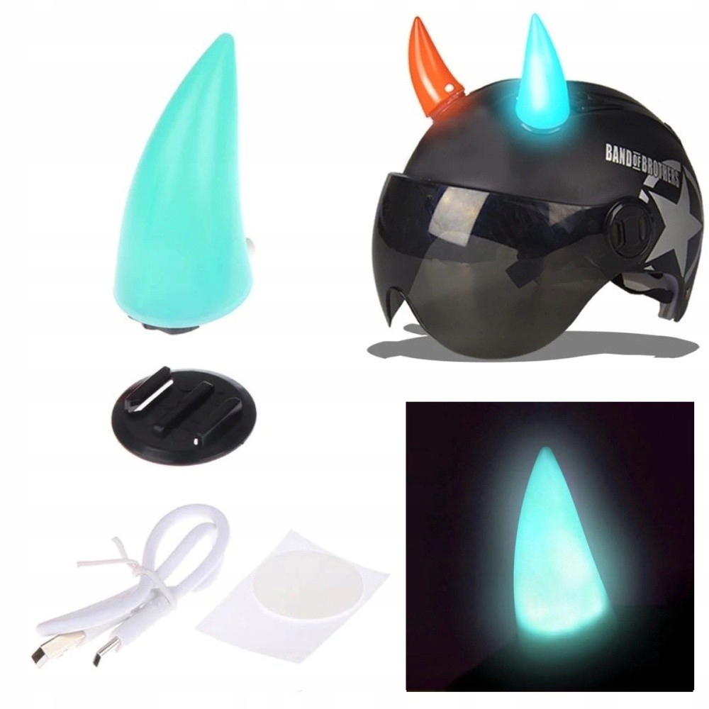 Пластиковые декоративные рожки для шлема со светодиодной подсветкой. Крепится к шлему на двусторонний скотч (входит в комплект). Они изготовлены из пластика и имеют форму рожек. Основная функция – украшение шлема и обеспечение непрерывного света. Каждый уголок оснащен выключателем и разъемом USB C для зарядки встроенного аккумулятора.