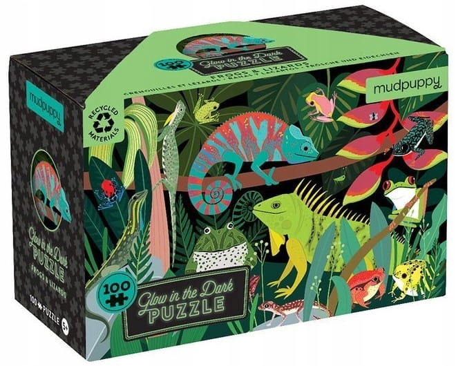 Пазл «Светящиеся в темноте лягушки и ящерицы», 100 деталей, Mudpuppy