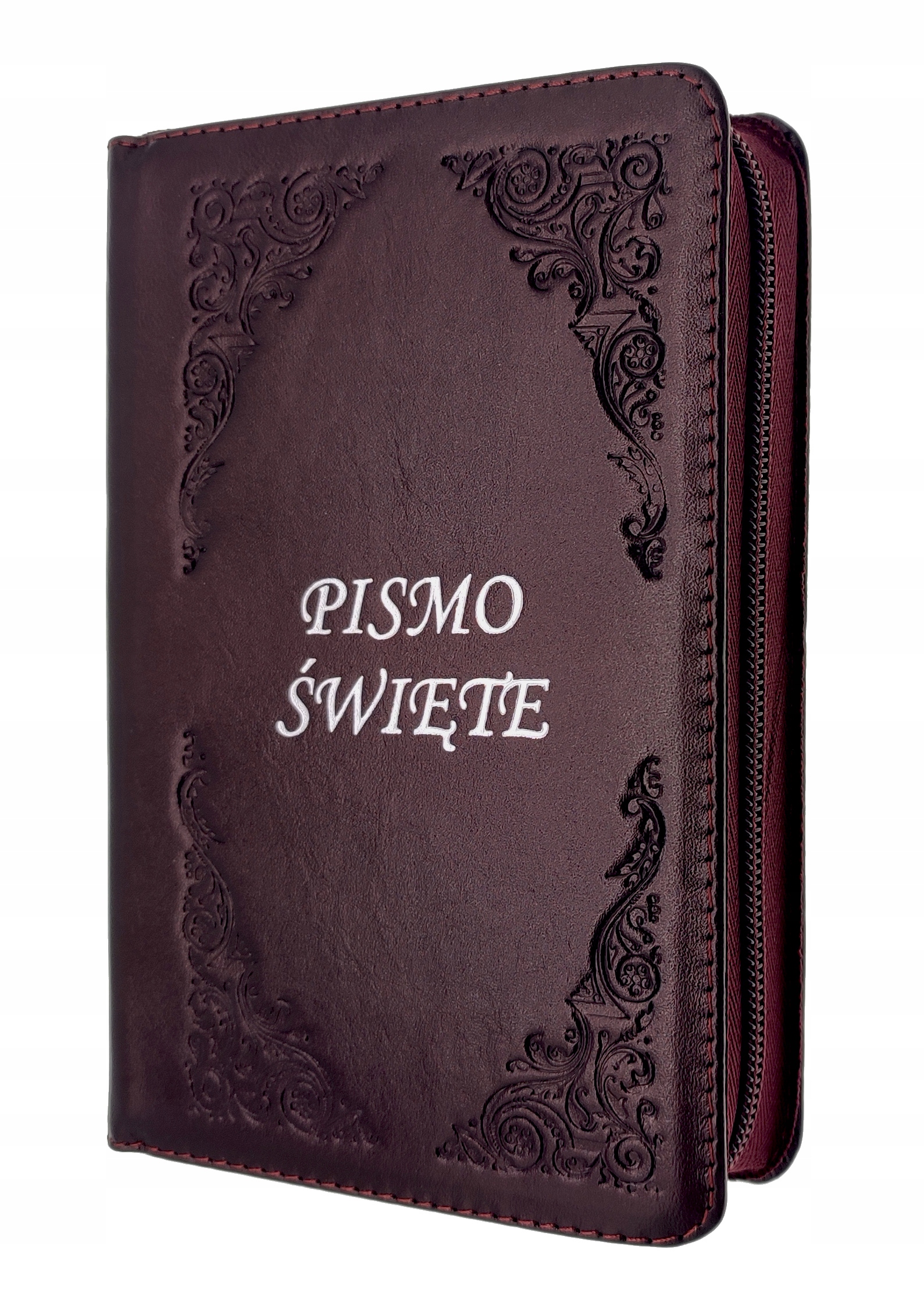 Священна біблійна тисяча. Шкіряна блискавка SMALL темно-бордового кольору