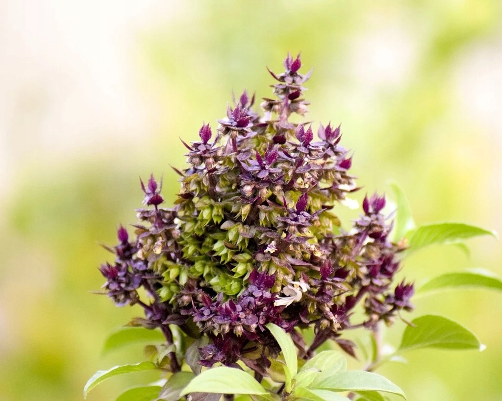 Святой базилик (Ocimum tenuiflorum), также называемый Tulsi, Royal Basil или индийский базилик, является видом растения базилика (ICE) растения из семейства Mint. Их естественное явление простирается от тропической и субтропической Азии до северной Австралии. Базилик может расти до 100 см в высоту и является многолетним растением, но не переносит мороз. Этот тип базилика имеет волосатый, слегка красноватый стебель, на котором растут противоположные зеленые листья. У них тонкие железистые волосы и узкие до конца. В отличие от базилика, который мы знаем (Ocimum basilicum), листья индийского базилика зазубрены. Они также немного темнее и тоньше, чем их родственники. Как и базилик, базилик производит конечные соцветия. Они имеют длину от 6 до 8 см и содержат 6 цветов в ложном кролике. Цветок святого базилика обычно имеет фиолетовые и редко белые хлопья, что делает базирующуюся большую приманку для пчел. Это также выпускает свежий, растительный аромат, напоминающий гвоздики. Тулси травы цветут с июня по сентябрь, и когда появляются фрукты арахисового арахита, коричневые или черные слезы. В индуизме Тулси называют «Святой травой», играет роль во время религиозных церемоний и символизирует божественную защиту.