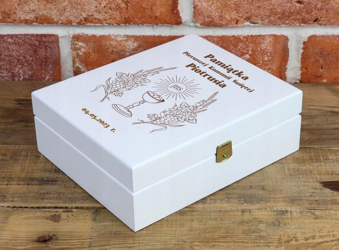 Сувенир Первого Причастия - Библия с индивидуальным посвящением в деревянной подарочной коробке.