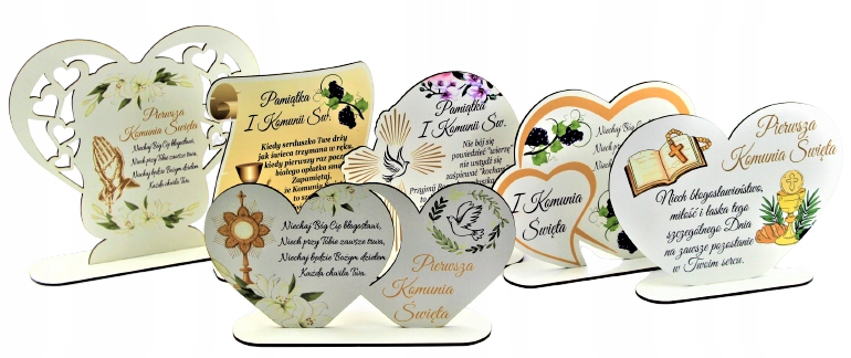На других наших аукционах вы найдете другие варианты сердечек с выгравированными пожеланиями и множество красивых сувениров к Первому причастию.