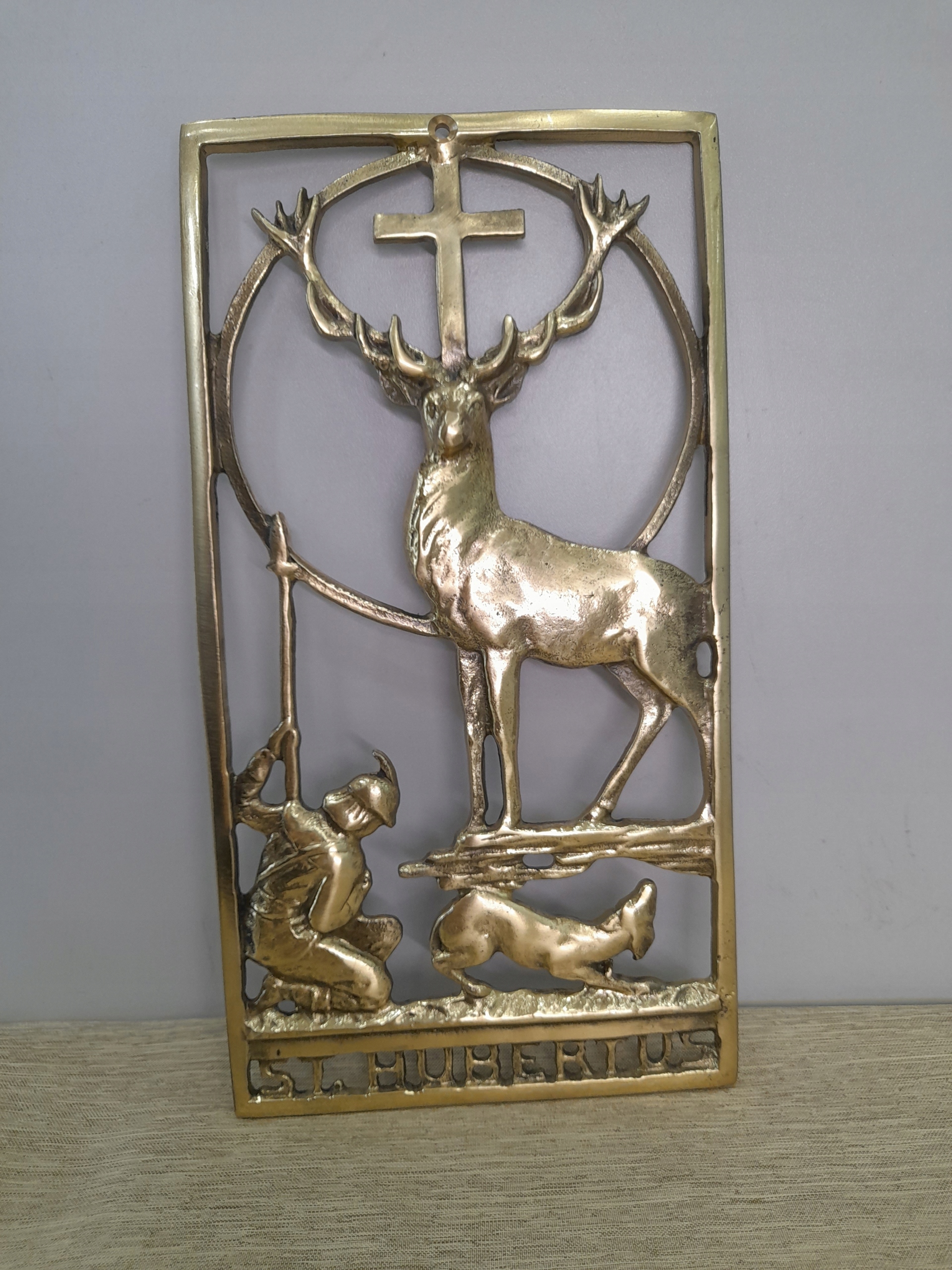 СВЯТОЙ ЮБЕРТ, ПОКОРИТЕЛЬ ОХОТНИКОВ ЛЕСОВ, HUBERTUS, ЛАТУННЫЙ КУЛОН