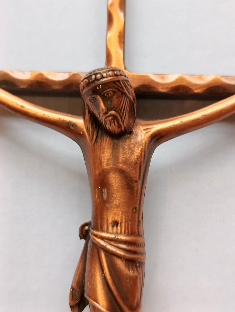 крест из металла; Закончил с медью. h1> представляет распятый Иисуса Христа. Очень привлекательное, тонкое изготовление может быть, несомненно, является великим случайным даром или символом дома для каждого католика, говорящего о своей вере. h1>