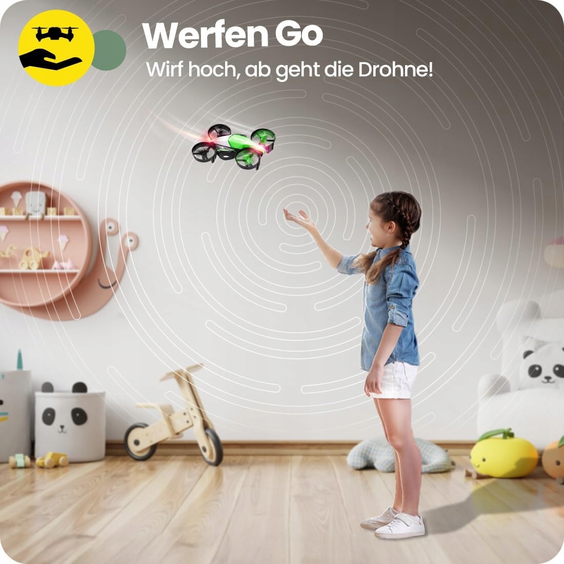 - Fleams Легко: Теперь вам не нужно сосредотачиваться на тяжелом маневрировании! Легко начать с одной кнопки. Стабильная в воздухе - даже если вы выпустите джойстик. Этот мини -беспилотник еще более захватывающий, чем вы можете себе представить!