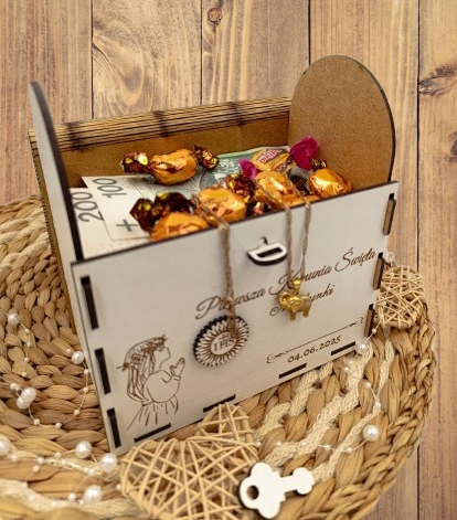 Добро пожаловать на наш аукцион, где мы представляем вам элегантный ствол причастия из высококачественного белого HDF. Этот красивый багажник - идеальный дар для первого святого причастия, которое будет радоваться его внешним видам и оригинальным. Украшение. Причастие. Cm