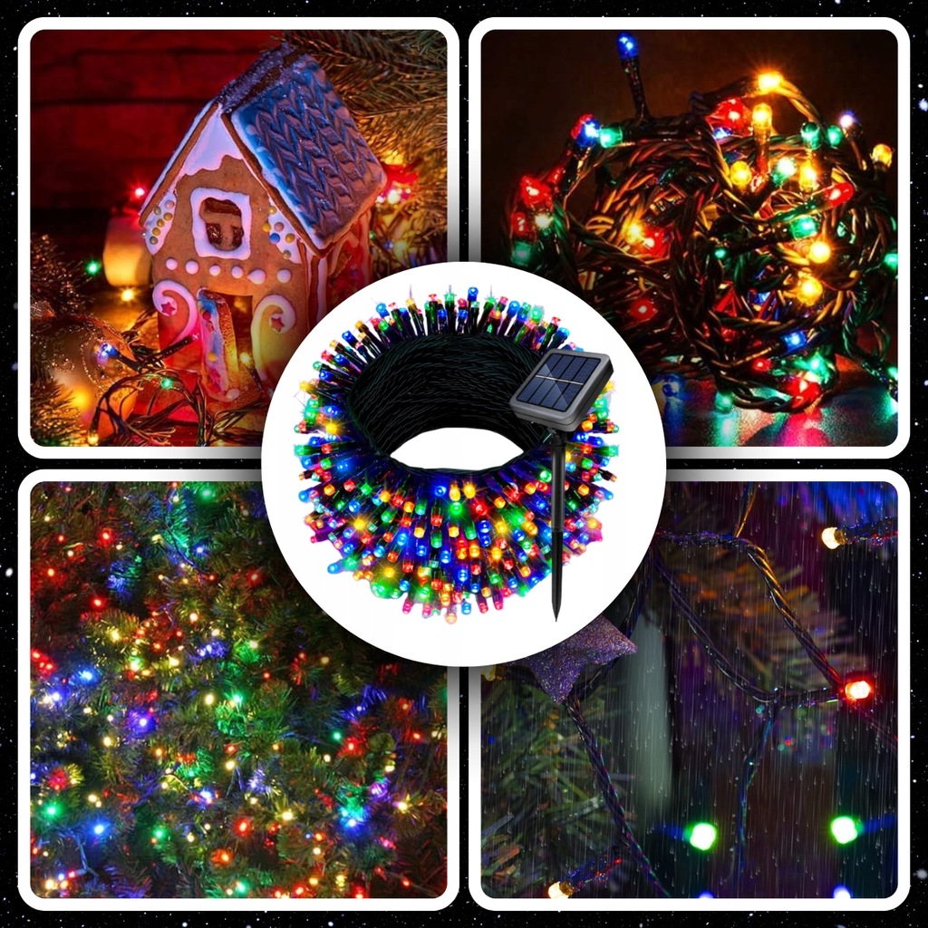 РОЖДЕСТВЕНСКИЕ СОЛНЕЧНЫЕ НАРУЖНЫЕ ЕЛОЧНЫЕ СВЕТИЛЬНИКИ 200LED РАЗНОЦВЕТНЫЕ 20M