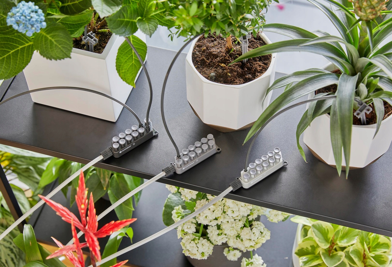 Независимо от того, находитесь ли вы в отпуске, командировке или просто после отпуска Нет времени – с комплектом для праздничного полива GARDENA вам больше не придется беспокоиться о том, что ваши растения не будут политы. В ваше отсутствие растения будут оптимально политы. Эта система требует питания от сети, но не требует подключения к крану. Во время отпуска вы можете разместить лейку в любом месте дома, рядом с розеткой. Используя капельницы с тремя вариантами дозировки воды, вы можете поливать до 36 комнатных растений одновременно в течение одной минуты в день. Праздничный увлажняющий набор содержит все необходимые элементы и сразу готов к использованию. Установка и ввод в эксплуатацию системы просты. Входящий в комплект контейнер для воды на 80 % изготовлен из переработанного пластика, что делает его экологически чистым решением для полива растений дома или в зимнем саду. Для оптимального расхода воды комплект можно подключить к оросительному насосу. Контейнер также можно использовать как практичное место для хранения элементов набора. Благодаря узкому корпусу комплект для орошения можно незаметно спрятать, например, за мебелью. Продуманный и современный дизайн набора определяет его вневременной характер, идеально вписывающийся в любой интерьер. Комплект также можно использовать на балконе. Емкость емкостью 10,5 литров обеспечивает постоянную подачу воды. Более длительная поездка тоже не проблема: благодаря возможности подключения вы можете увеличить количество доступной воды, подключив дополнительные емкости. Уход за растениями в ваше отсутствие.Самостоятельный полив растений в домашних условиях.