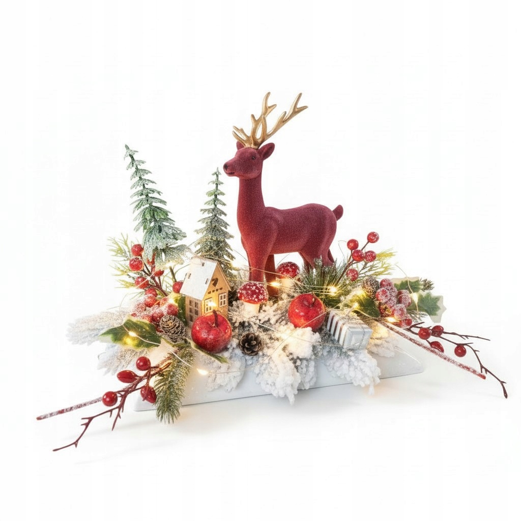 Внесите в свой дом волшебную зимнюю атмосферу благодаря уникальному новогоднему украшению с фигуркой оленя! Это впечатляющая, изысканная в каждой детали композиция, которая порадует и домочадцев, и гостей.