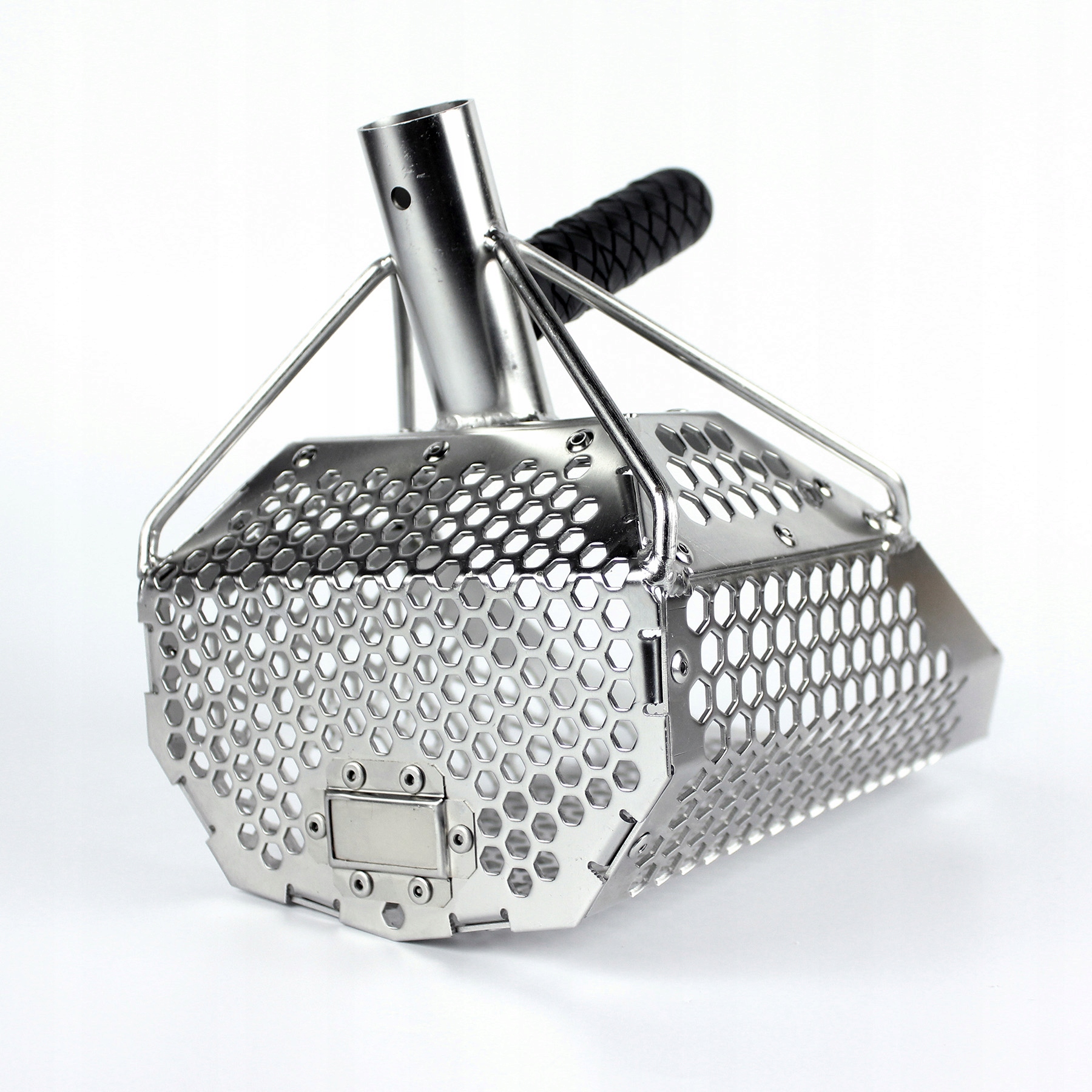 Сито Swagier Scoop V10 — очень удобное в использовании большое сито для просеивания песка на пляжах или всех типах водоёмов. Оно полезно в качестве дополнения к снаряжение каждого искателя, использующего только металлоискатель, особенно при поиске в воде или на пляже. Отверстия диаметром 7 мм и 10 мм отлично подходят для просеивания песка, а их шестиугольная структура облегчает поиск мелких предметов, особенно цепей. Прорезиненная крышка рукоятки обеспечивает надежный и надежный захват инструмента. Установленный неодимовый магнит облегчает удержание стальных предметов в сите.