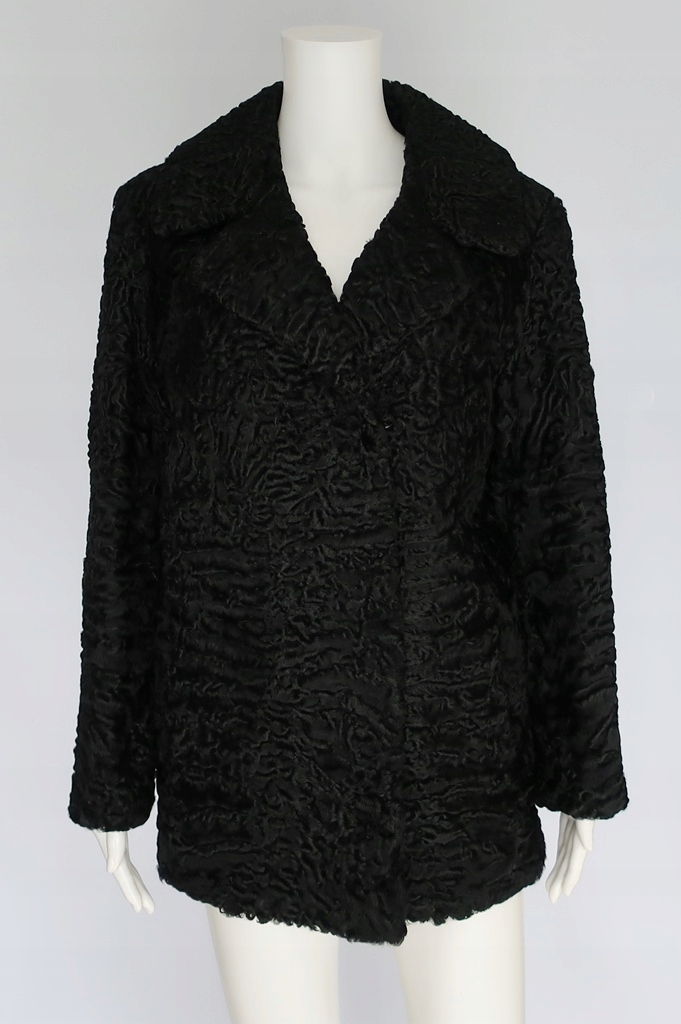 SWAKARA ЧОРНЕ хутряне ПАЛЬТО CARACULA L / XL