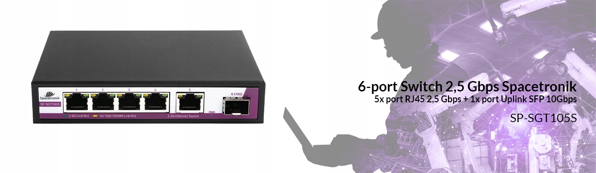 SWITCH 5 портів RJ45, надшвидкий 2.5G, 1x SFP-порт Spacetronik SP-SGR105S