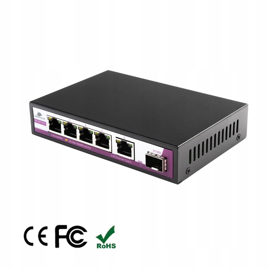 6-портовый ПЕРЕКЛЮЧАТЕЛЬ Spacetronik 5 портов RJ45 2,5G + 1 порт SFP 10G SP-SGT105S