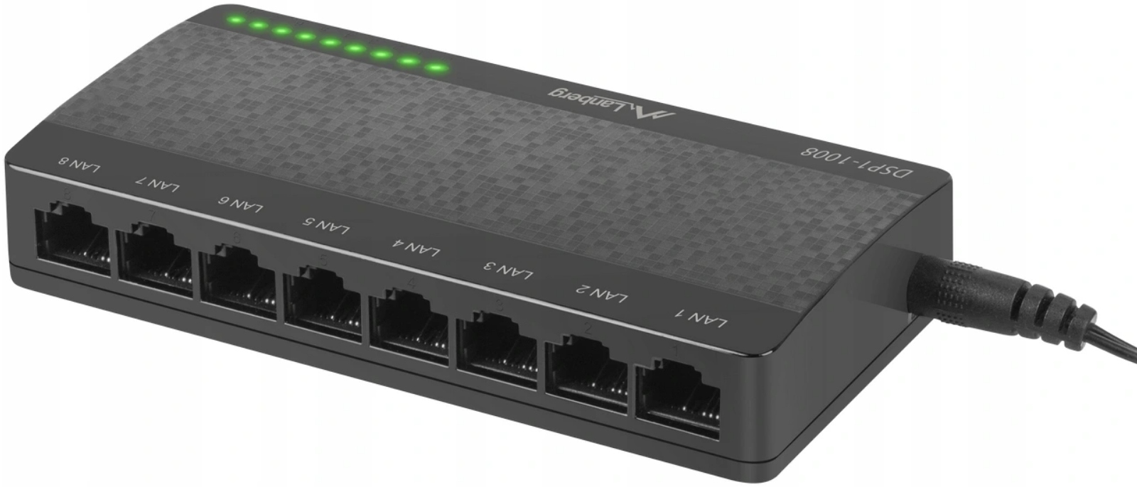 Lanberg DSP1-1008 — небольшой неуправляемый настольный коммутатор, оснащенный 8 портами Gigabit Ethernet. Устройство маленькое, удобное и работает по принципу Plug&Play. Коммутатор поддерживает функции коммутации для 8 портов RJ-45 10/100/1000 Мбит/с с автоматическим согласованием соединения и поддержкой MDI-MDIX.