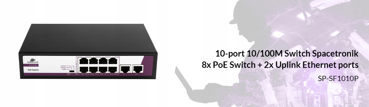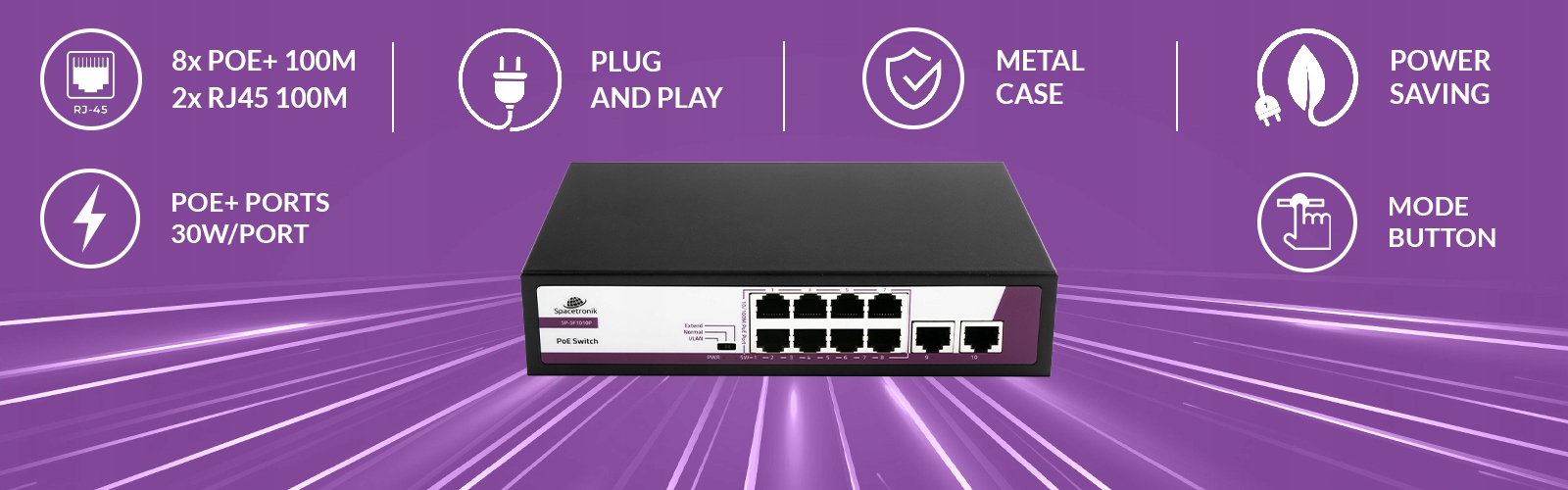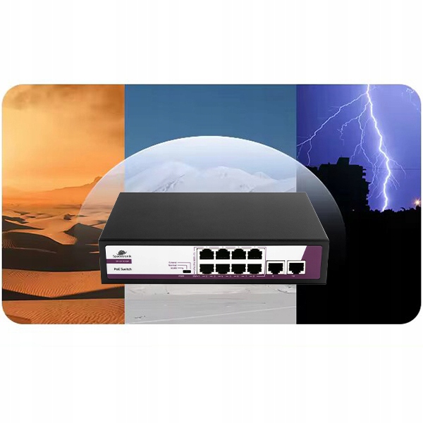 SWITCH CCTV 10 портів 100 Мбіт/с POE 120 Вт 8x POE порт 2x Uplink SP-SF1010P