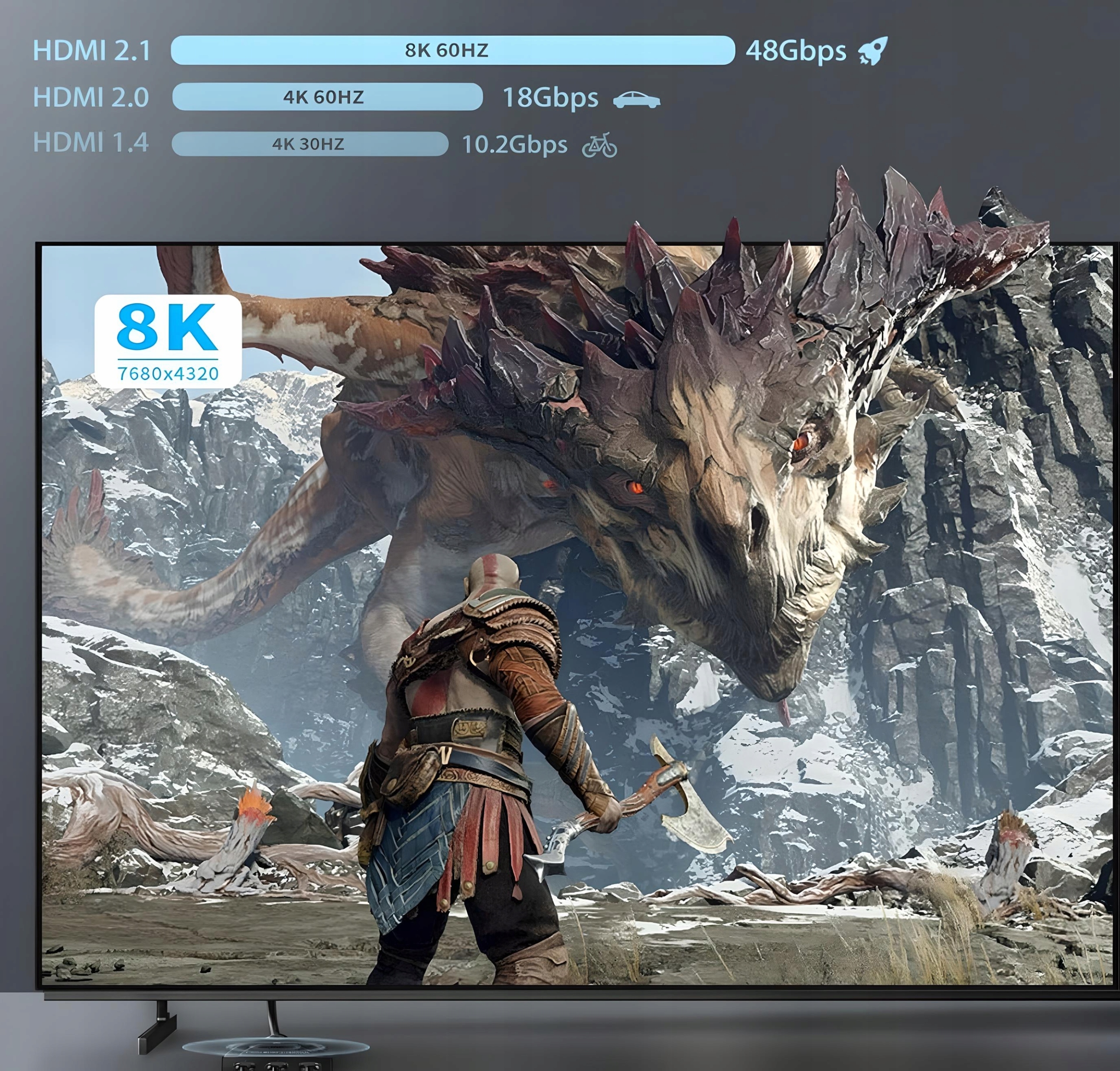 ✨ Поддерживает 8K при 60 Гц и 4K при 120 Гц — супер плавное изображение 🎥🕹️