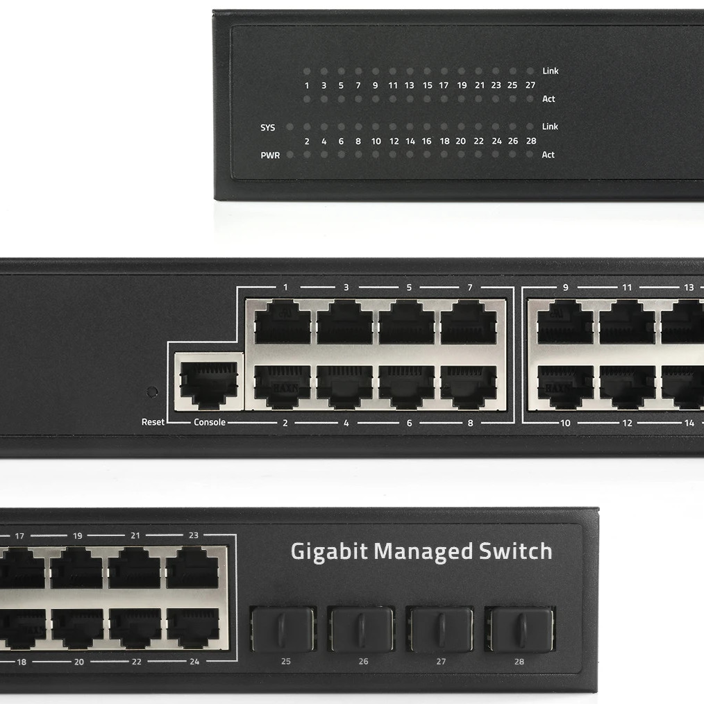 24-портовый коммутатор, GIGABIT, 4x SFP, 1x консоль, металлический корпус