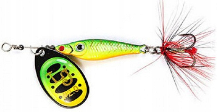 Триан-лезвие представляет собой серию ротаторов с классической формой. Строительство лезвия Триана означает, что вращение невероятно изменчивое и не скручивает кабель во время рыбалки. Ее вес 6G, 9G или 12G дает нам возможность ловить окунь даже в очень глубоких местах. Роторная палитра Trian Blade во время работы поворачивается вокруг тела под углом 30*, что делает вспышку даже в текущей воде очень низким сопротивлением. Lucky John Trian Blade - очень охотничья приманка, ни один окунь не может сопротивляться этому. Пайк также частый хост. Каждый из счастливчиков Johl, прыгнул, является мега -сильным и острым якорем с Chwost, который еще больше увеличивает ее рыбалку при рыбалке.