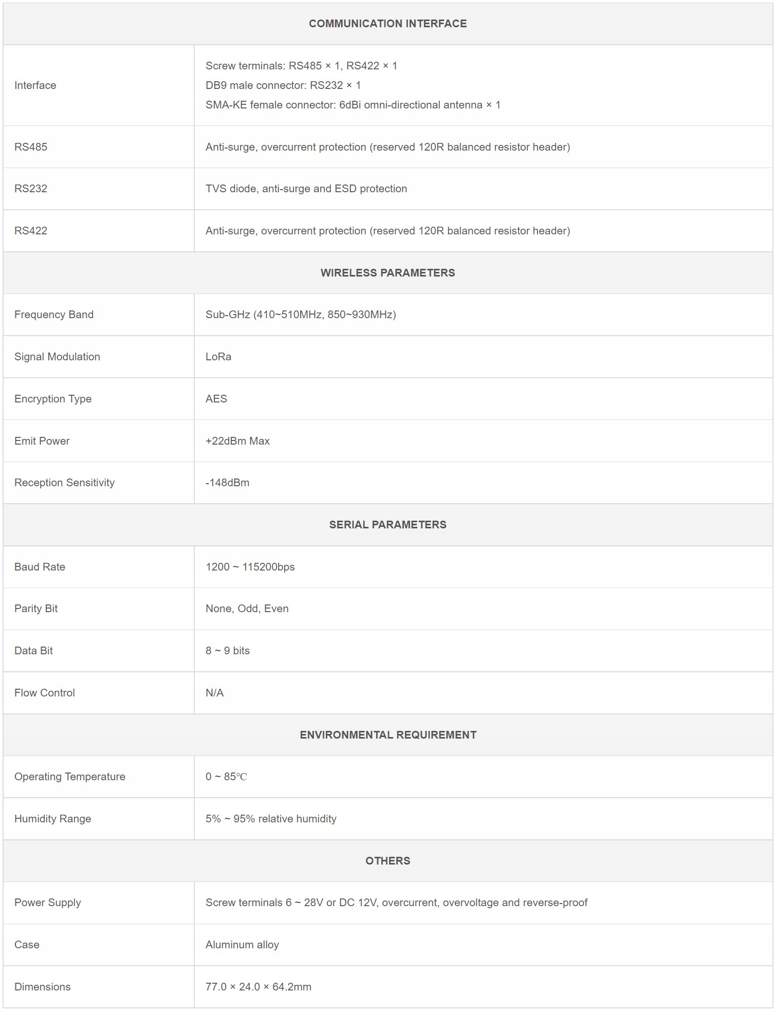 - Поддерживает отправку LBT, выход RSSI, настройку AT-команд.