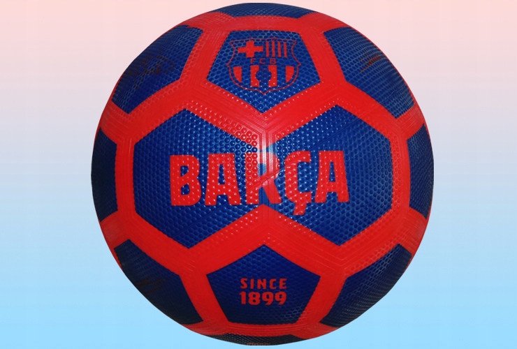 СЯЄТЬСЯ ФУТБОЛЬНИЙ М'ЯЧ З ПІДПИСАМИ FC BARCELONA RO.5