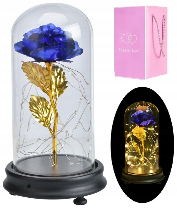 СВЕТЯЩАЯСЯ СИНЯЯ РОЗА В СВЕТОДИОДНОМ СТЕКЛЯННОМ КУПОЛЕ