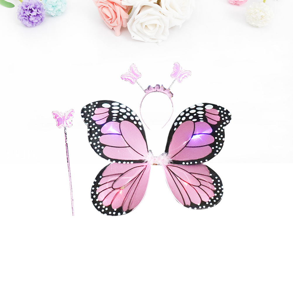 ✅ten a style a set set, который содержит крылья, волшебная палочка и повязка на голову. Есть четыре светодиодных фонаря, которые имеют особый, в том числе быстрая фибрилляция, медленная фибрилляция и длинное мерцание. У них есть 2 гибкие полосы, которые проходят вокруг рук. Его низкий вес упрощает его ношение. The whole outfit makes your children look with