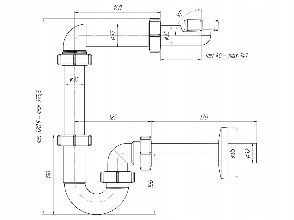 SYFON DO UMYWALKI PRZYŚCIENNY OSZCZĘDZAJĄCY MIEJSCE