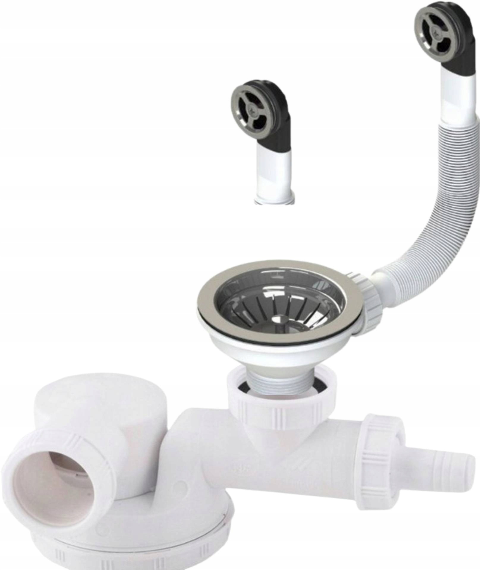Syfon Zlewu Pojedynczy Niski z Okrągłym Przelewem Sitko fi 115 mm