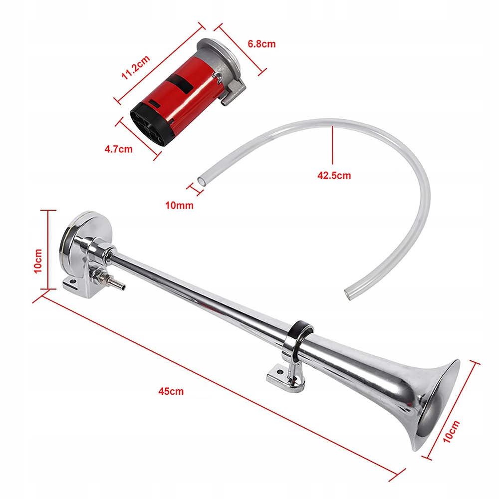 SYGNAŁ KLAKSON PNEUMATYCZNA TRĄBKA FANFARA JAK TIR 150dB Z KOMPRESOREM 12V