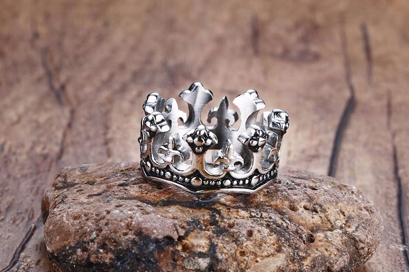 SYGNET PIERŚCIEŃ STAL KORONA KRÓL KING SREBRNY