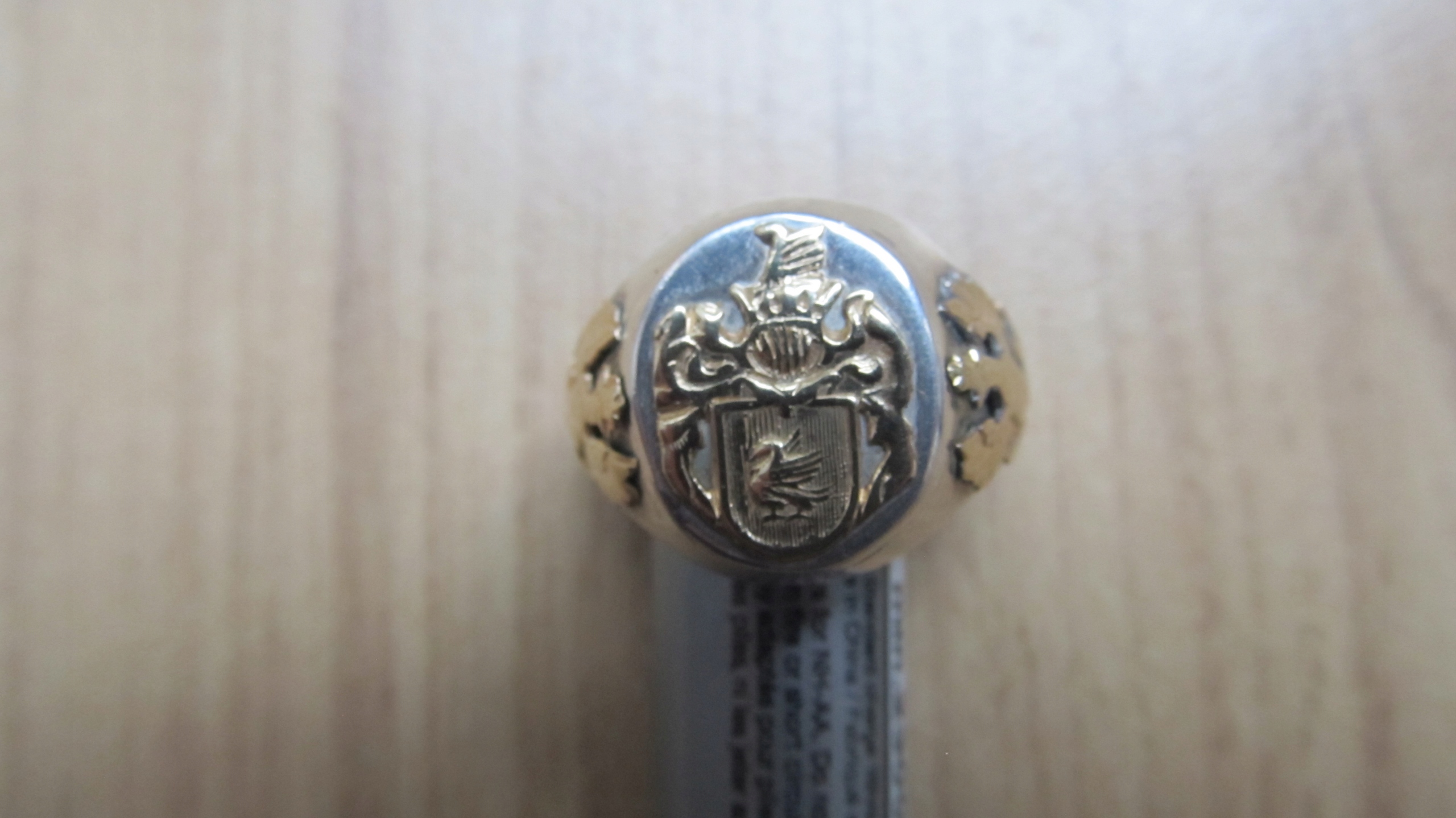 Sygnet z herbem szlacheckim Łabędz. Srebro i złoto.