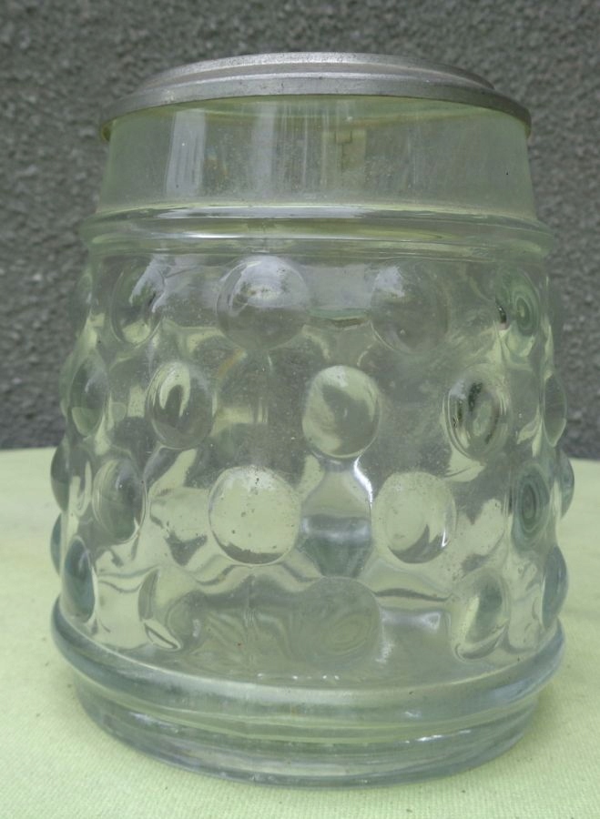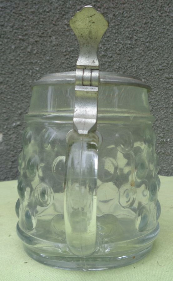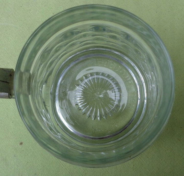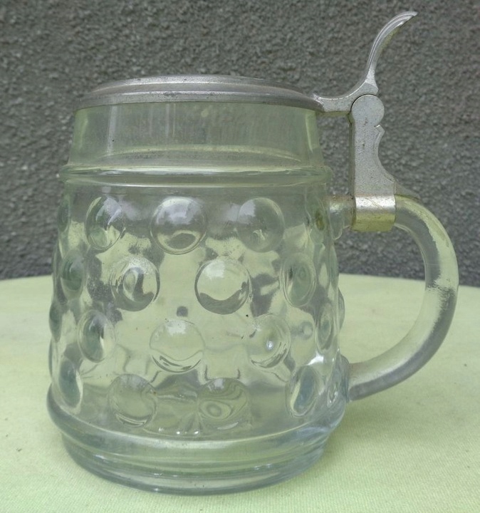 Красивая, элегантная стеклянная кружка с двойной подписью. Чаша экспоната была оформлена очень интересно. Он украшен орнаментом в виде кругов. Сверху он украшен интересной нежной полоской. У кружки интересная, изящная ручка. Крышка изготовлена из металла. Крышка вверху украшена круглой вставкой из стекла. На дне кружки интересная, изящная розочка. На кружке есть подписи внизу и на крышке. Подписи видны на фотографиях. Экспонат не имеет повреждений. Рекомендую коллекционерам и не только.