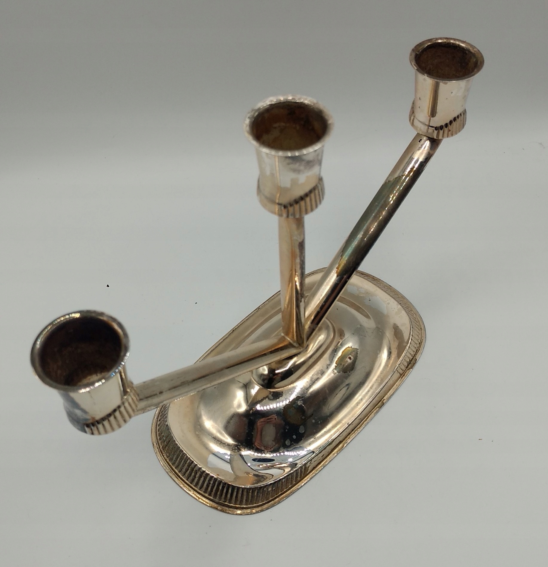 подписной ЗАП, тройной подсвечник, посеребрённый, СТАРЫЙ