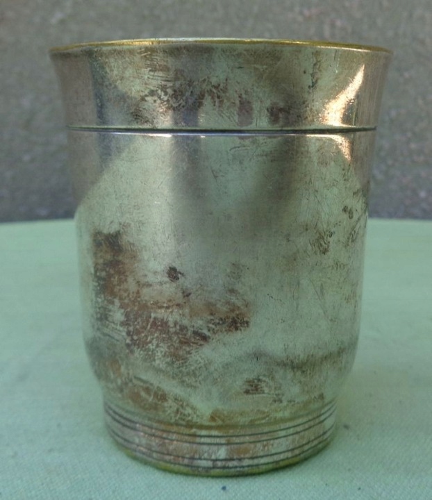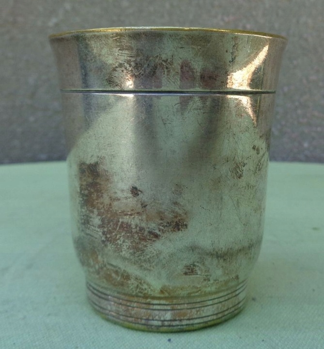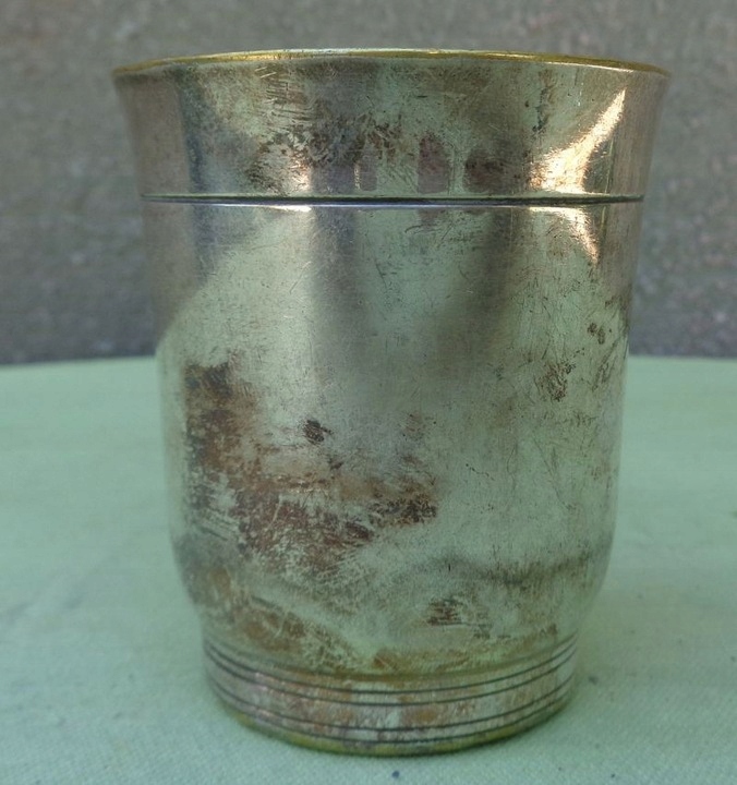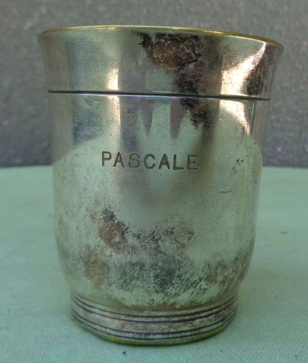 Интересная, интересная чашка с позолотой 1900-1920 годов. В центральной части экспоната находится надпись Паскаль. Экспонат имеет интересную классическую форму и форму. Внизу он был украшен линейным орнаментом. Сверху также имеется декоративная линия. Чашка изготовлена из плакированного металла. Чашка подписана, подпись видна на фотографиях. Чашка остается нетронутой. Всем рекомендую.