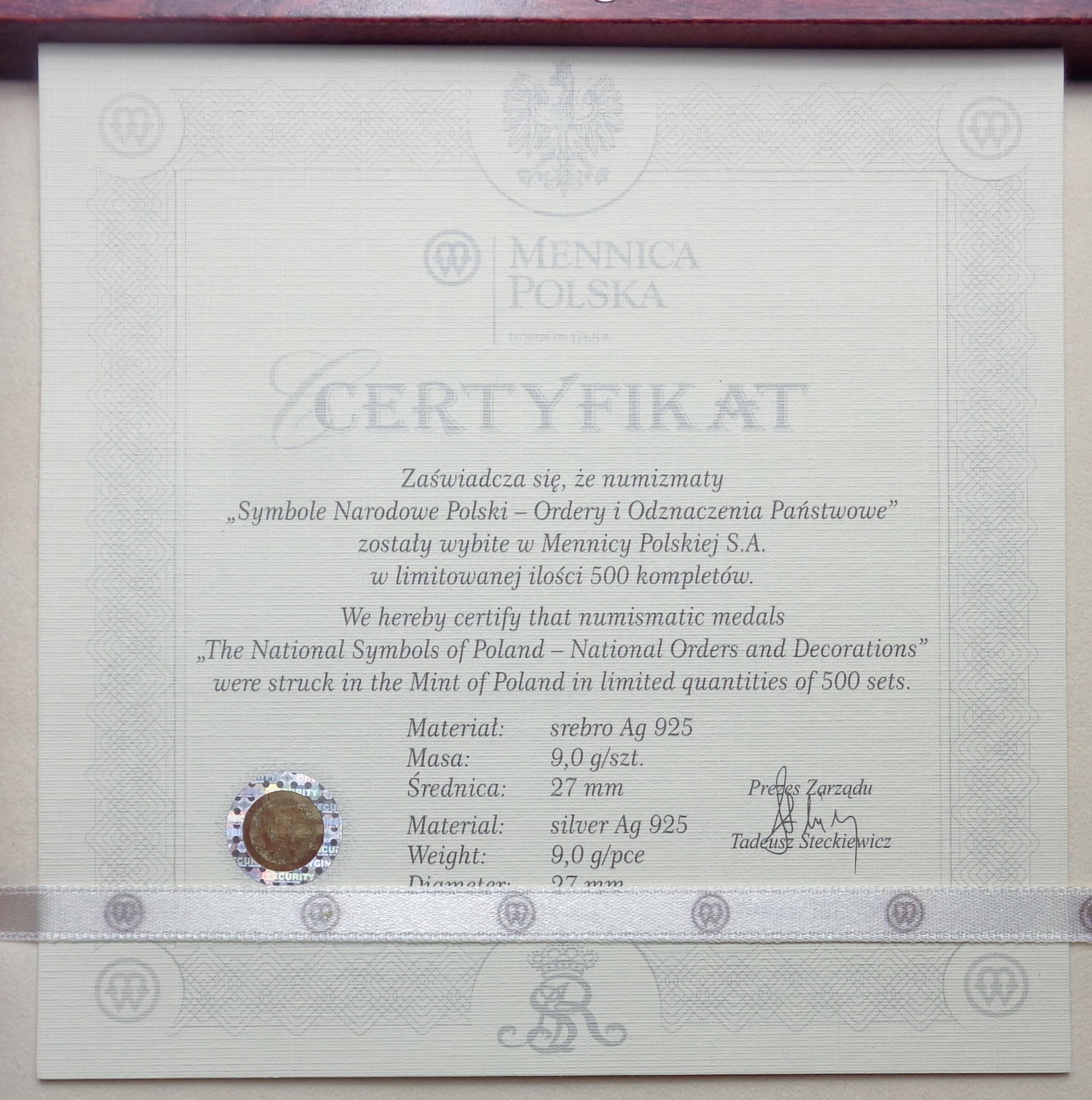 Symbole Narodowe Polski - Ordery i Odznaczenia Państwowe - nakład 500 sztuk