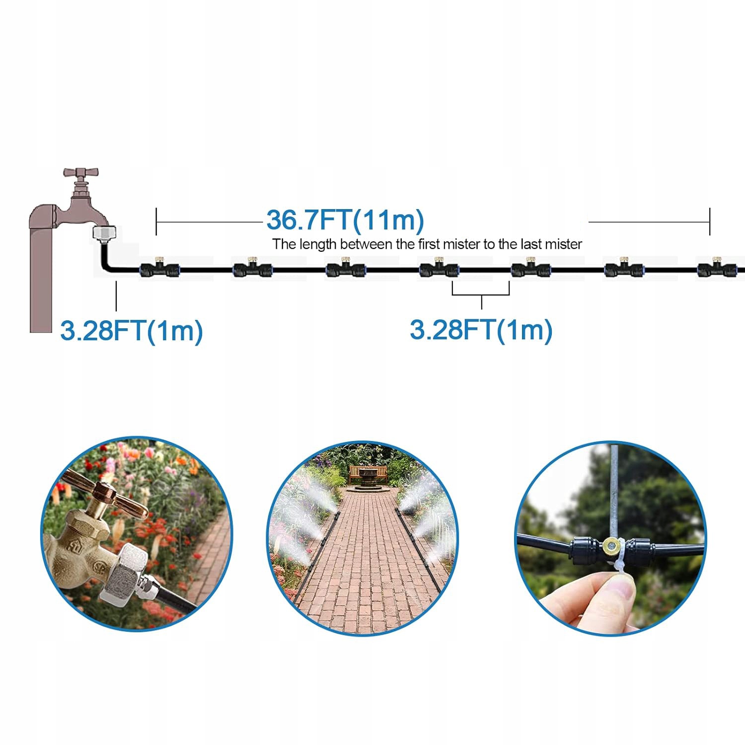 SYSTEM NAWADNIANIA ZRASZACZ KURTYNA WODNA NAWADNIA MGIEŁKA WĄŻ OGRODOWY 12M