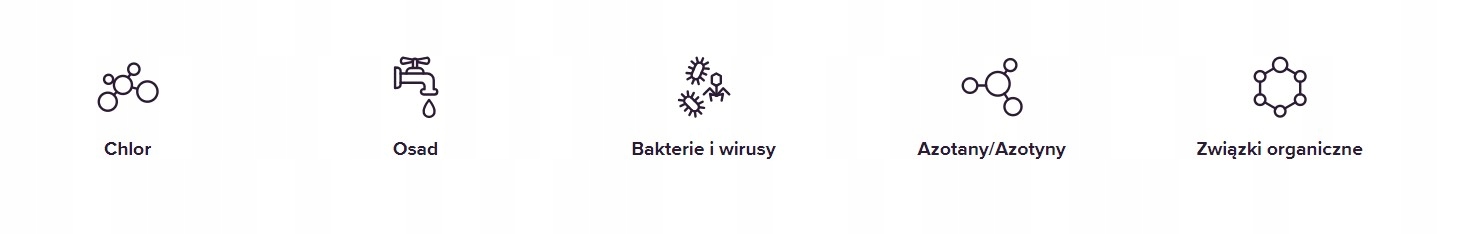 Удаляет из водопроводной воды все загрязнения, включая хлор, органические соединения, тяжелые металлы, нитраты и нитриты, жесткость, бактерии и вирусы.